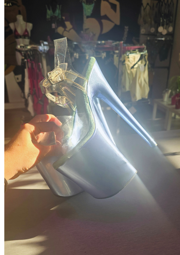 Découvrez Frozen Peri, un SKIN d’un bleu lavande givré, délicat et hypnotique. Avec sa brillance glacée et son éclat féérique, il transforme vos talons en véritables cristaux enchantés.